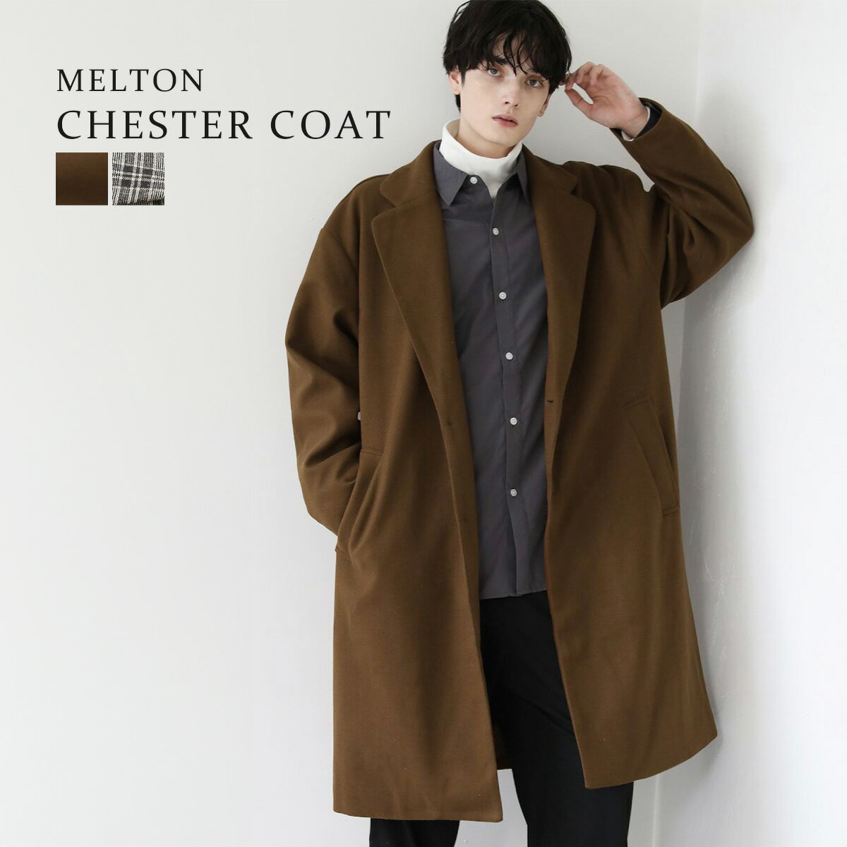 チェスターコート メンズ コート アウター ロングコート メルトン 無地 チェック 秋 冬 秋服 冬服 S M L XL |