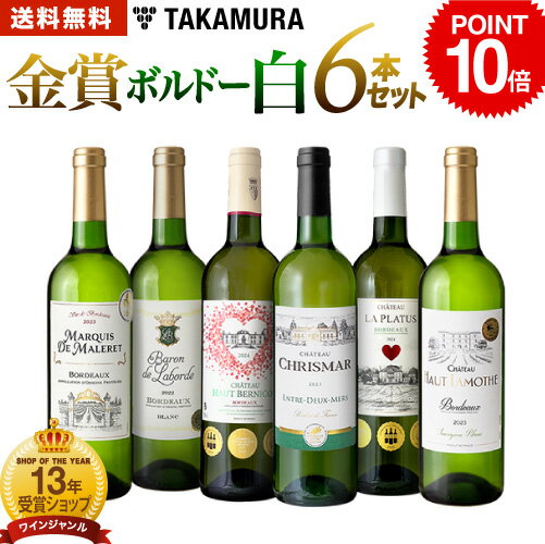 【限定クーポン配布中】 ポイント10倍 送料無料 第28弾 6本で合計10冠!金賞の中の金賞を厳選 タカムラ自慢の 金賞ボルドー 6本 白ワイン セット (追加6本同梱可) 飲み比べ ギフト ワインセット ボルドー フランス 金賞 白 [T]