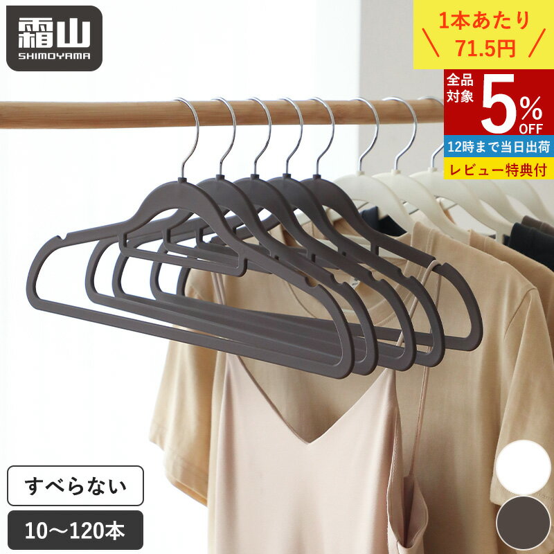 ラバーハンガー ハンガー 10本 30本 60本 120本 セット すべらない クローゼット 収納 収納用品 洗濯 ノンスリップ スリム 衣類収納 洗濯物干し 多機能ハンガー 変形しにくい 滑らないハンガー 収納ハンガー ホワイト ブラウン 省スペース 霜山 レビュー特典